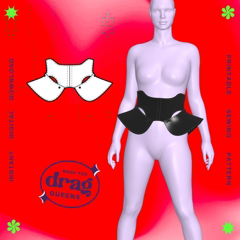Download our fashion waist belt underbust corset sewing pattern, designed for drag queens. This unique and versatile pattern allows you to enhance your figure effortlessly with the addition of detachable hip flares. Whether you're looking to create a bold, hourglass silhouette or make a statement with your drag ensemble, this corset is the perfect accessory. Crafted for non-stretch fabrics, it offers both style and structure, making it an essential staple for every drag queen's wardrobe. Elevate your look, embrace your creativity, and express your unique style with this exceptional pattern.